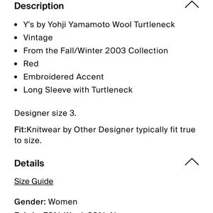 light pilling for a vintage wool/acrylic sweater but can be shaved easily with sweater carder. Very good condition for rare vintage item. Designer size 3 for the brand which can honestly fit a small, medium, or large. Just depends on how you choose to wear it. I am a 4/6 and it looks fab but I like things bigger. This is designer size 3 which is his version of Japanese “Large.” Should fit up to US size 10. Stunning piece!