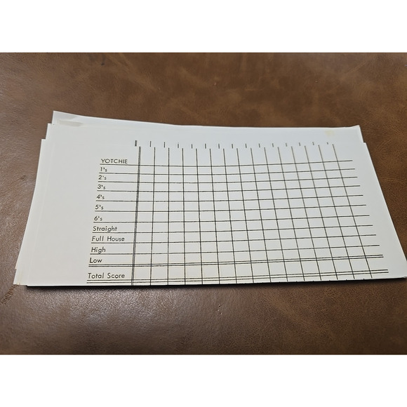 Vintage Yotchie Dice Poker Game Record Score Sheet 42 Piece Replacement Cards. Pre-owned