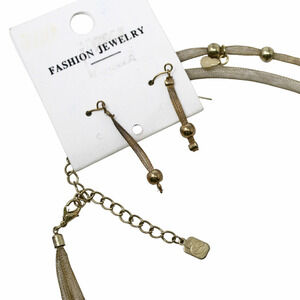Vintage Youai Mesh Cord Necklace and Pierced Dangle Earring Set