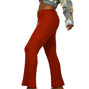 Vintage Young Canada Sweater Knit Pants Red Ribbed Pull On Elastic Flare Small