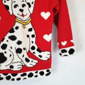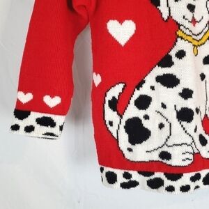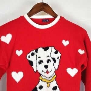 Vintage Young Classics red sweater with dalmatian dog and heart accents. Excellent condition. No size, estimate size small/medium girls.