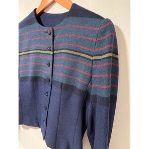 Vintage Young Traditions Business Jacket Navy Blue Red Yellow Stripes Size 6 JL