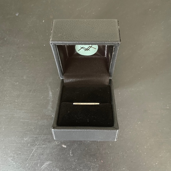 Flat top ring by Young in the Mountains. Sterling silver (no stamp), minimalistic design, thing band with a flat top, looks like a "D" when held, and in great condition! This is one of Mariele's first pieces! We grew up in the same town : ) Comes with original box. Can't find this style anymore!
