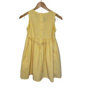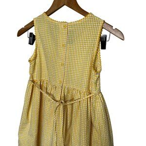 FEATURES: Adorable sunshine yellow gingham sleeveless dress with allover flower embroidery. Front patch pockets and cute matching Bric-à-brac.