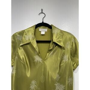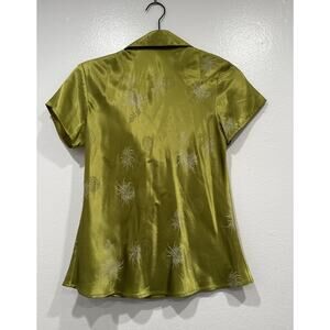 Vintage Younique Clothing Green Top Size Medium Shiny Satin Asian Inspired READ