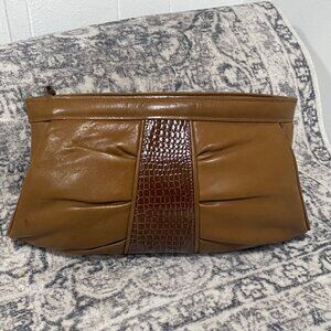 Vintage Yuki Torii Leather and Croc Clutch in Carmel Brown