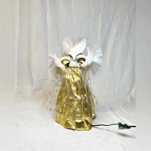 Vintage Yule Rite 12” Gold Fiber Optic Angel Christmas Table Top Tree Topper