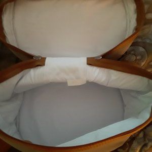 * Beige color with brown trim and adjustable strap
