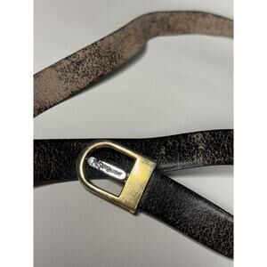Vintage Yves Saint Laurent Belt Mens Medium Black Gold Leather France 90s