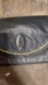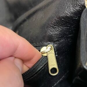 The clutch is in good vintage condition overall. The exterior leather looks great for its age, and the structure is intact. The interior shows a small, light paint wear area, but it is minor and does not affect usability.
