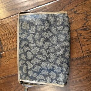 Elegant Yves Saint Laurent bag with a striking black and gold pattern. Features a classic logo detail. Perfect for any occasion. Good Vintage.