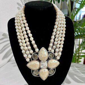 Vintage Yves Saint Laurent Four Strand Pearl Necklace with Crystal & Pearl Penda