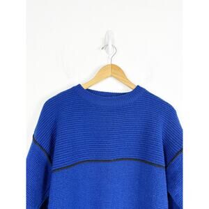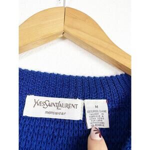 Vintage Yves Saint Laurent Men’s Sweater Medium 100% Wool Crewneck Blue Stripe