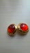 ⢠Vibrant red glass cabochon center with a molten, high-shine finish