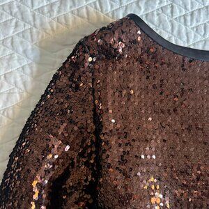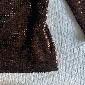 Rare authentic YSL Rive Gauche piece from the 1980s featuring full bronze-brown sequin embellishment and long sleeves. Crafted in France from a luxe acetate blend with full lining. Some loose threads from age (pictured), but overall in great vintage condition.
