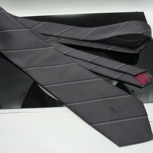 Vintage Yves Saint Laurent Striped Neck Tie Dark GREY 55"