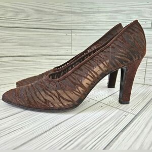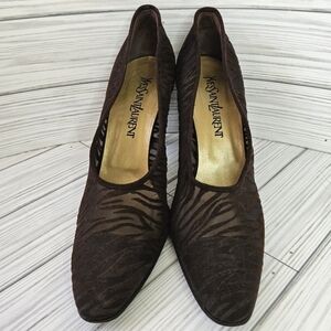 Vintage Yves Saint Laurent Velvet and Mesh Stripe Heeled Pumps in Brown Size 8.5