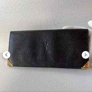 Vintage Yves Saint Laurent YSL Black Leather Cassandra Long Bifold Wallet EUC