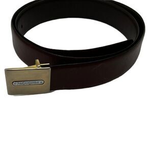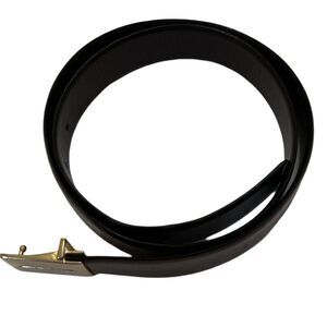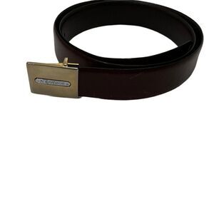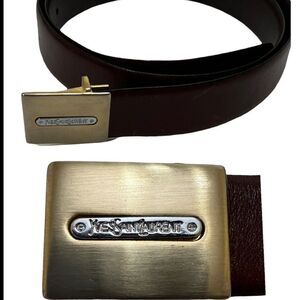 Vintage Yves Saint Laurent YSL Brown Leather One Inch Square Belt w Gold/Silver Logo Buckle Size 34