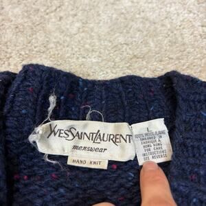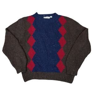 Vintage Yves Saint Laurent YSL Menswear Wool Hand Knit Argyle Sweater Large.