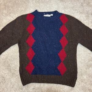 Vintage Yves Saint Laurent YSL Menswear Wool Hand Knit Argyle Sweater Large