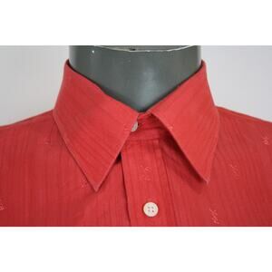 Vintage Yves Saint Laurent YSL Monogram All Over Red Button Up Shirt 17 34-35