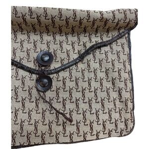 Vintage Yves Saint Laurent YSL Monogram Canvas Pouch Portfolio Clutch Brown
