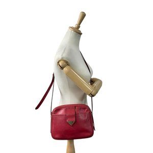 Used Vintage Yves Saint Laurent YSL shoulder bag in red leather with gold logo and hardware. Compact, size A1. (SKU: GZl1c5s1)