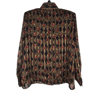 Vintage Yves St Clair 2 Button Up Top Sheer Blouse Diamond Black Gold Red Sz 14W