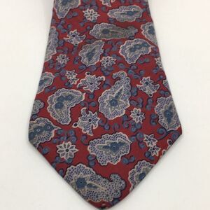 Vintage Yves Saint Laurent YSL Dark Red Blue and Gray Paisley Silk Tie. Tie has been freshly dry cleaned by me, the day I photographed this I picked it up from the dry cleaner, but a few spots remain. I forgot to tell my dry cleaner about the spots, so these may be able to be stain treated and dry cleaned again, silly me, I thought the dry cleaner would know to look for stains when dry cleaning a tie. Regardless, it's freshly cleaned and spots are minimal and photographed above. Check out my Poshmark closet for more vintage designer ties to bundle and save.