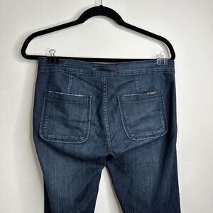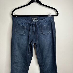 Vintage Z Cavaricci Dark Wash Low Rise Flare Front Tie Waist Jean Patch Pocket 7