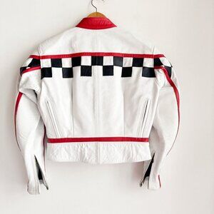 Vintage Z Customs White Leather Geometric Print Cropped Moto Jacket S