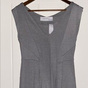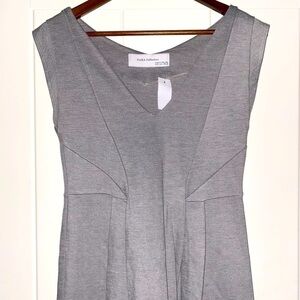 Vintage Zara Women V-Neck Sleeveless Gray Pleated Mini Dress Front L Pullover