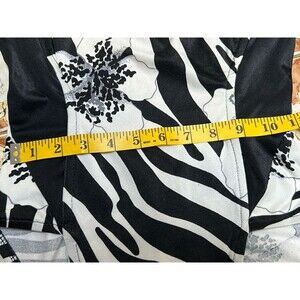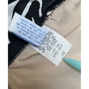 This striking vintage one-piece swimsuit from Barefoot Miss of California features a bold black-and-white zebra print with oversized floral accents. Designed with flattering black side panels and a low scoop back, it offers both structure and style. The swimsuit is tagged a size 7/8 and includes a nude mesh lining with shelf bra support. Best fits AB cup, light support with shelf bra. Made in the USA.