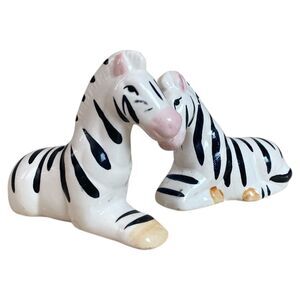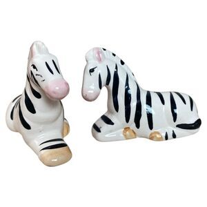 Vintage Zebra Salt & Pepper Shakers 2" Ceramic Pair Retro Kitchen