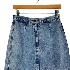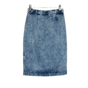 Vintage Zena Acid Wash Denim Pencil Skirt Size 11 Blue Denim Snap Butt Split USA