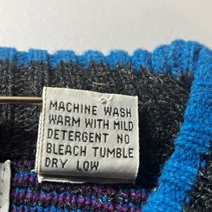 Keywords: Zeppelin sweater, vintage sweater, geometric sweater, retro sweater, wool blend sweater, mens sweater, xl sweater, gray sweater, purple sweater, blue sweater, knitwear, crew neck sweater, patterned sweater, 90s fashion, vintage clothing