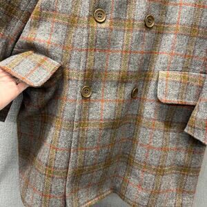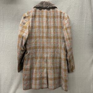 Vintage Zero King Coat Mens 38 Wool Faux Fur Lined Gray Orange Plaid Made in USA