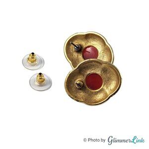 Vintage Zig Zag Faux Carnelian Oval Gold Tone Pierced Earrings