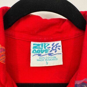 Vintage Zip Code Collared Maxi Dress Womens Large Red Cotton Fish Print Mexico