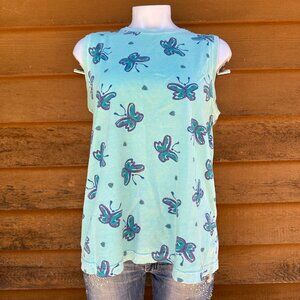 Vintage Zip Code Teal Purple Butterfly USA Muscle Tank Top Size L