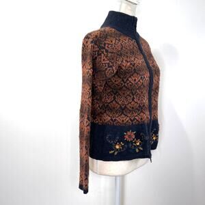 Vintage Zip Front Knit Cardigan by Dressbarn Embroidered Stripe Damask