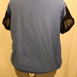 Vintage Boomerang KC Blue Zippered Pullover Shirt w/ Black Mesh Attached Undershirt and Sleeves, Bottom Hem Elastic For Snug Fit At Waist or Hips