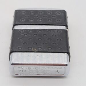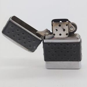 Stylish Zippo lighter with a black textured grip and silver finish. Made in the USA.
