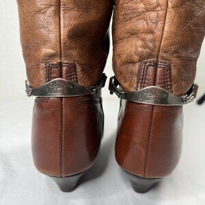 Vintage Zodiac Leather Boots Western Boho Mid-Calf Toe Taps Straps Brown 8.5