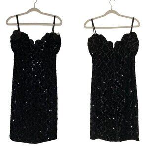 Vintage Zum Zum Black Dress Size Small Velvet Sequin Metallic Short Sleeves