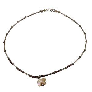 This necklace features a charming abalone bear pendant accentuated by a delicate arrangement of beads. Its 15-inch length offers a versatile fit, while the subtle combination of colors adds a touch of sophistication to any ensemble.