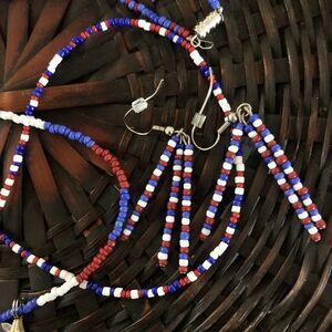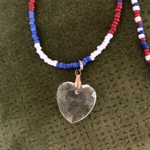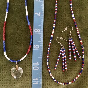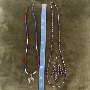 Vintage Zuni Beaded Necklace Glass Beads Crystal Heart Pendant Earring Set