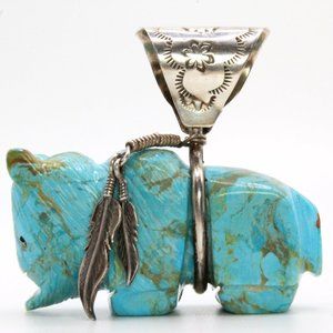 Vintage Zuni Buffalo Fetish Sculpted Turquoise 2" Large Sterling Silver Pendant