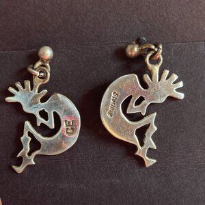 Vintage Zuni Kokopelli Earrings Inlay Sterling Silver Stamped